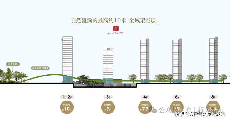 这个标准比不少甲级写字楼还高,几乎跟国金中心、柏悦酒店那种顶级商用空间看齐了,这样的架空层高度,天然的让建筑悬浮在植被之上,每户都是景观最C位.
