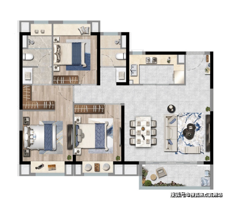在售户型,无论是结构方正的建面约100~122m²精装三房、还是奢享三面瞰景建面约122m²宽幕高层,上实城开坚持从细节出发,最大化地诠释了「望海归心」的居住价值: