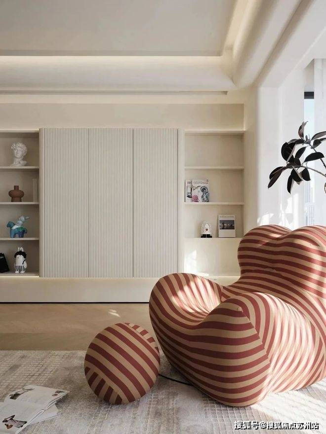 极简风格释放着从容的态度,条纹亮色沙发的摆放恰到好处地过滤几分无聊,盛下几分惬意。线条游走间,摒弃过多的装饰,延伸更广阔的空间。呼吸之中,任心而动,一片小天地,尽情放任松弛的气息。