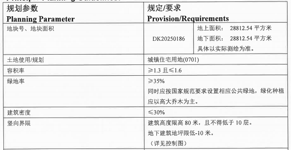 规划条件如下: