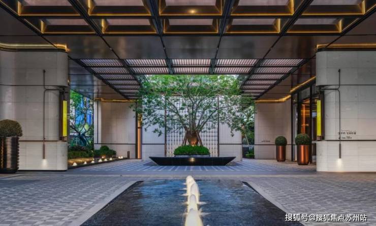 社区入口处,百米酒店式落客门庭 气宇轩昂,贝金米黄石材的质感尽显尊贵;大树聚场 ,全冠移植超 60年铁冬青,归家的第一眼便满是贵气。五重礼序园林 (迎、礼、聚、活、登)层层递进,蓝钻大理石中庭水景 波光粼粼,躺平水院 爱马仕灰奢石拼花交相辉映,每一处细节都在诉说着海派住区的非凡品质。