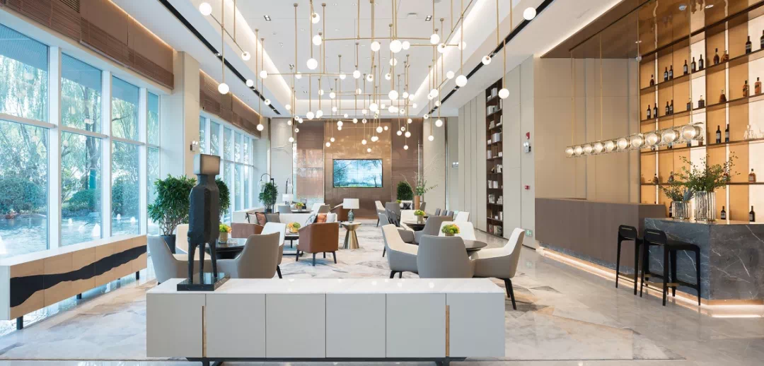 延续于建筑,与体验中心线条形成良好呼应,形成艺术空间的全景体验,传统与现代在这里碰撞升华,自然与光影在这里融会贯通。