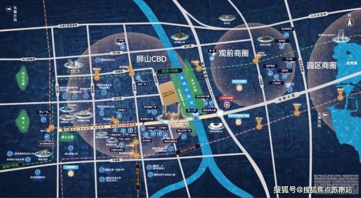 向北则可以远眺虎丘塔、寒山寺等姑苏文化瑰宝;每当夜幕降临,更是可以将狮山CBD的璀璨夜景尽收眼底。