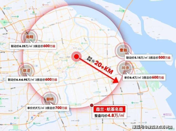 从全市房价格局来看,距离陆家嘴直线约20公里的板块,新房价格基本都在6万以上,相比之下森兰·航荟名庭约4.8万/㎡的均价,无疑是同纬度的价格洼地!