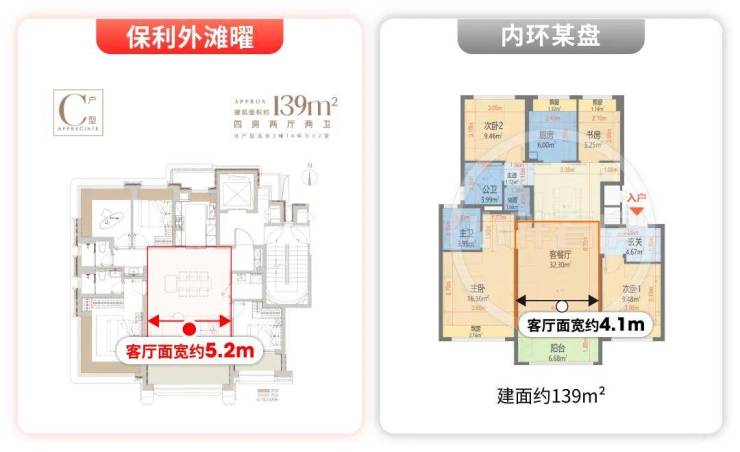 保利外滩曜的建面约139㎡户型,是项目仅2#、3#西边套才有的限量产品。