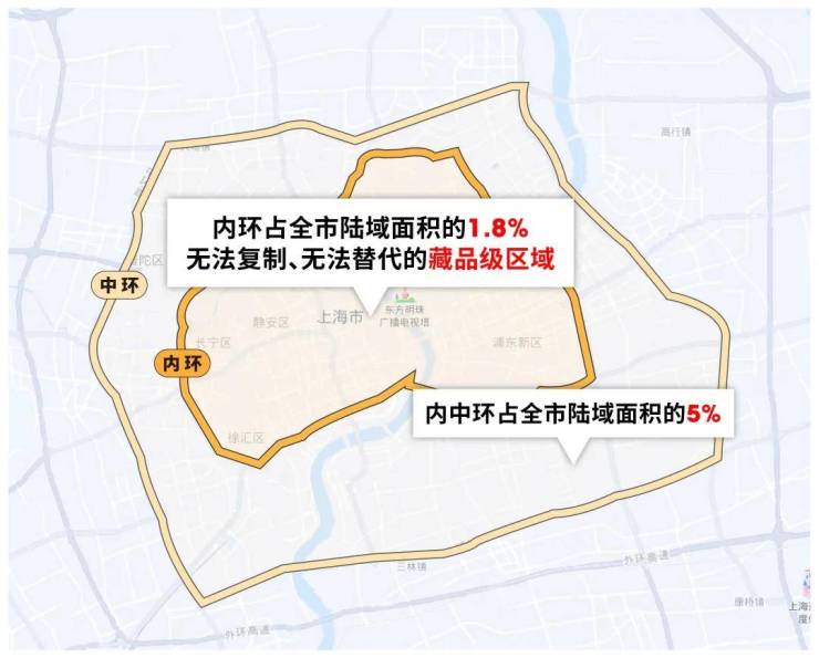 ①上海内环总面积仅占全市陆域面积的约1.8%,是上海开埠百年的城市核心原点,开发早已饱和,没有任何扩容可能;