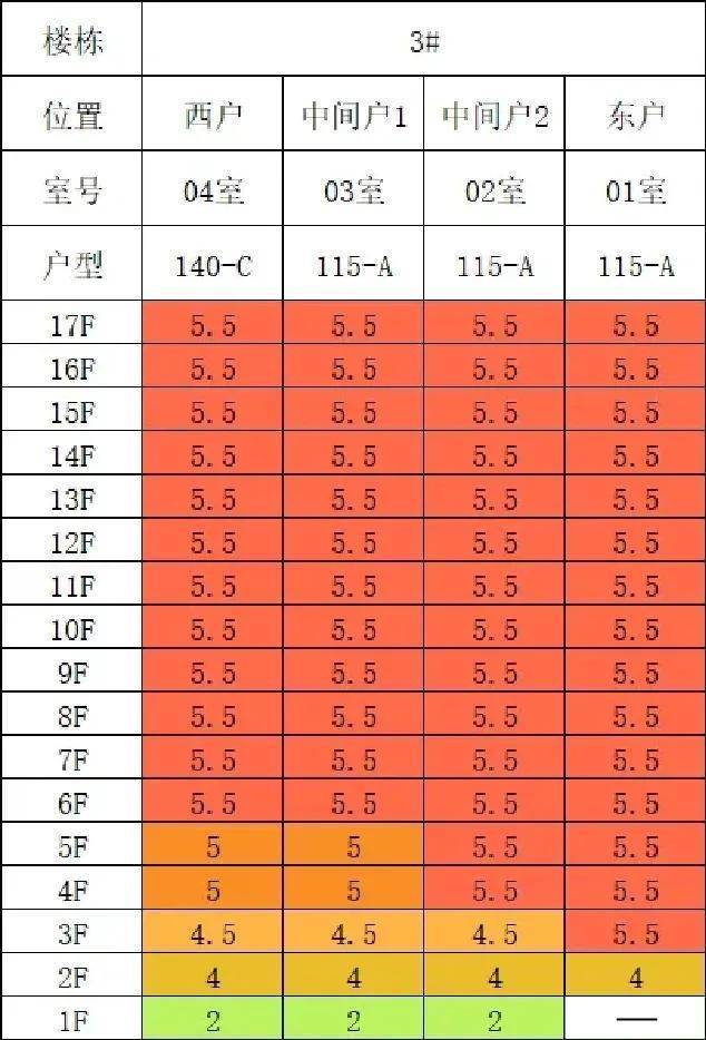 从3号楼一房一价表来看,东单元建面约115㎡户型,在保证楼王核心优势的前提下,价格真的很有诚意: