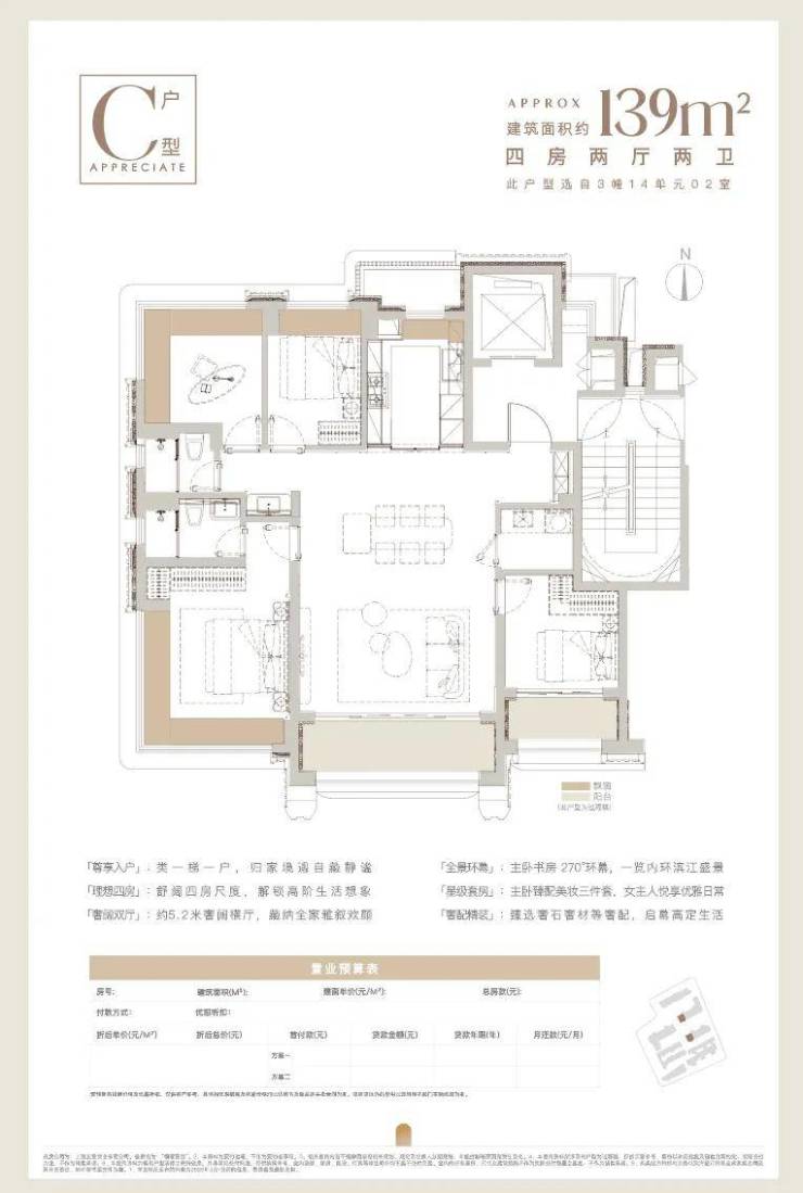 建面约139㎡天幕四房!