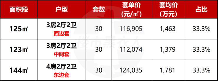 2、123㎡中间套:本批次的“性价比锚点”