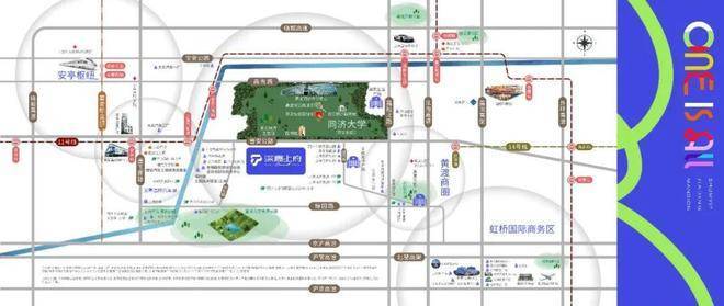 深嘉上府距离规划中的地铁14号线西延伸线同济大学站直线约300米,是真正意义的地铁盘。(数据来源:百度地图)