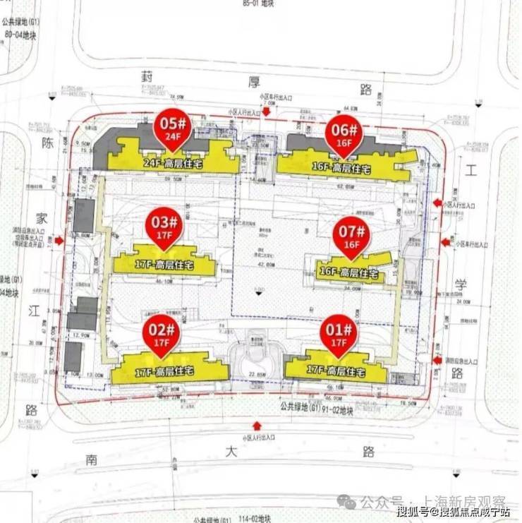 92-01地块拟建6栋15-17F高层住宅产品,并且全部做了首层架空.值得一提的是,项目小区出入口做了景观架构,在3号楼与5号楼之间做了下沉庭院,并在小区中央配置了1623.59㎡的集中绿地.