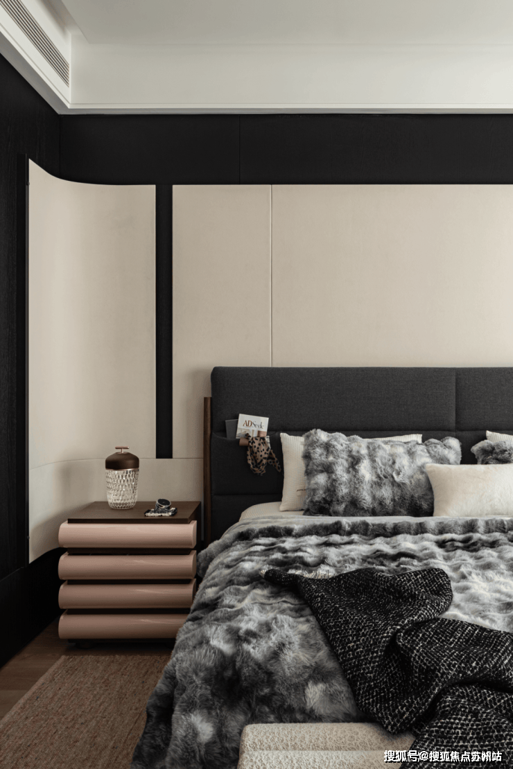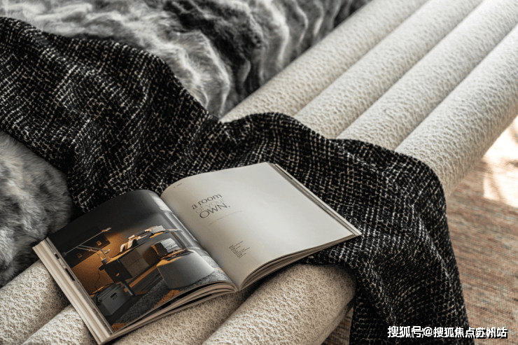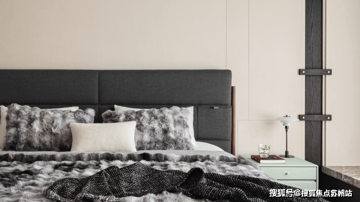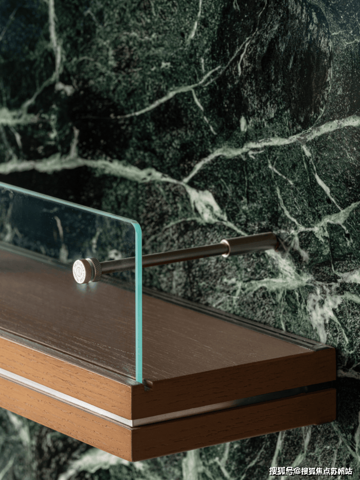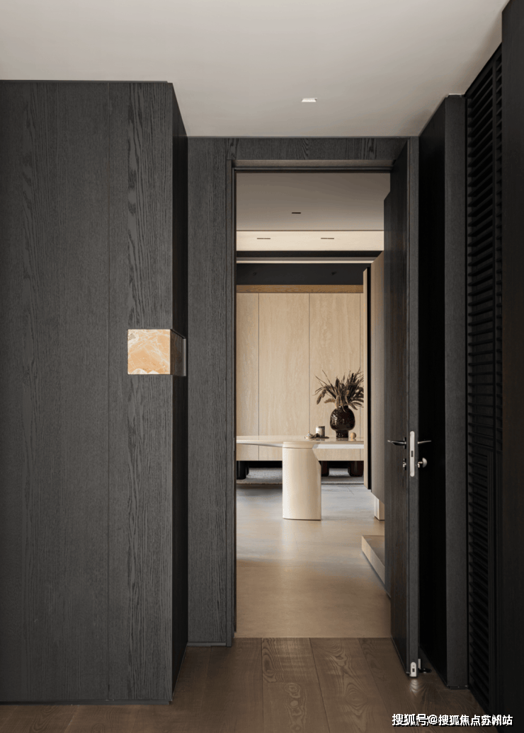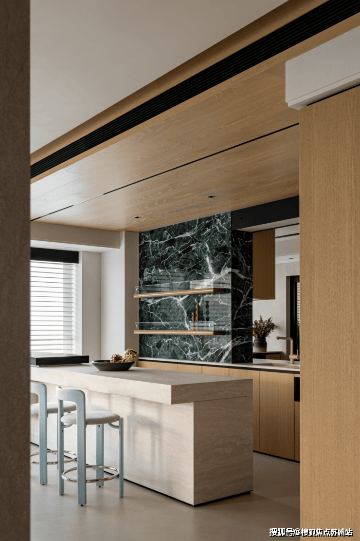 大理石的高低错落与墙面木作系统结合,织物的柔软形成构筑逻辑,沉稳与感性交融,构成一种独特的空间节奏。