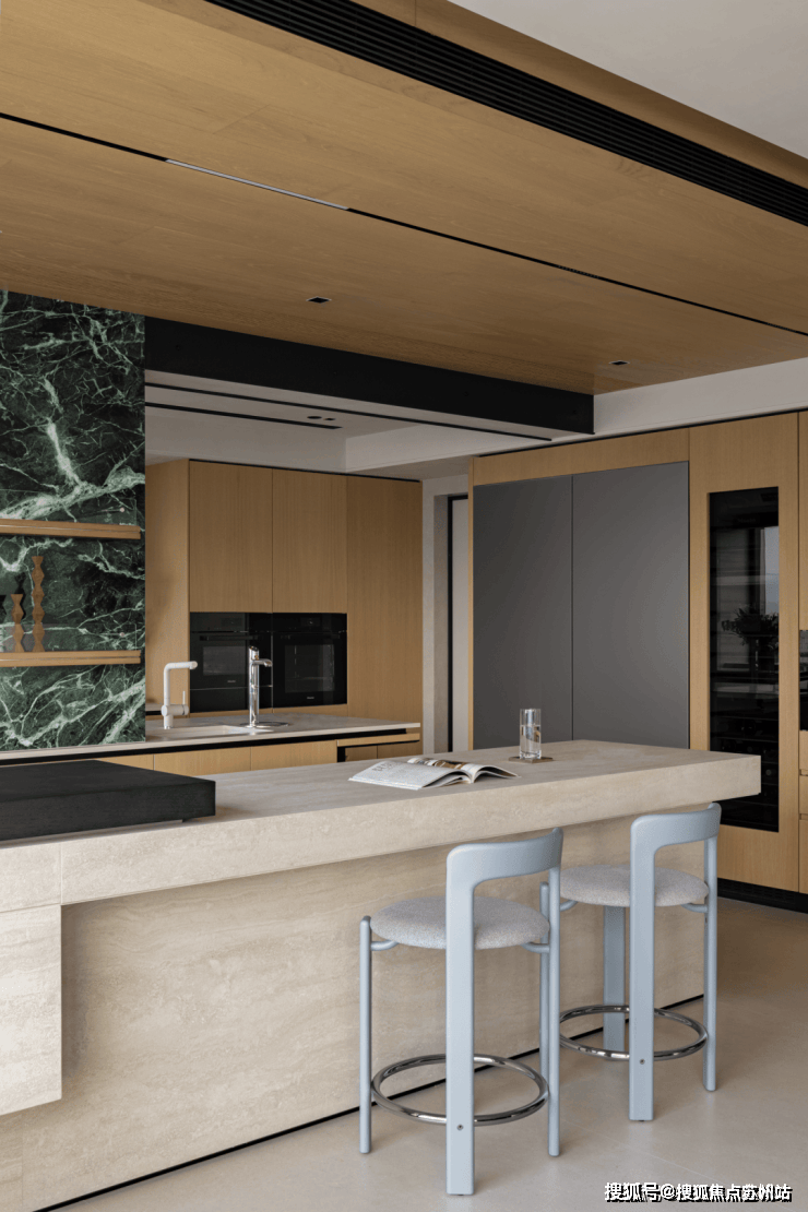 以理性为基调,精准编排的节奏,实用性与美学的分寸达到平衡。石材与岩板的肌理冷静内敛,金属的光泽映射着温暖的日常,结构的排列暗藏逻辑,动线的流畅回应着生活的直觉。