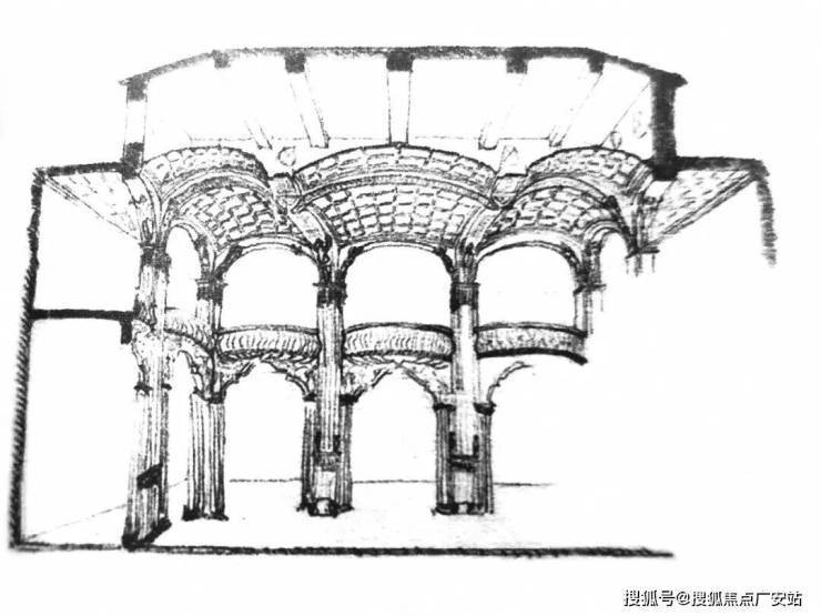潮鸣外滩,结合礼查饭店孔雀厅“三心拱”,以永恒不朽的稳定构图,更大承重能力的线条感,营造稳定的基座感.