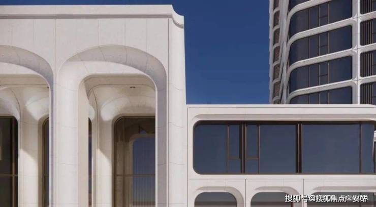石材择选上,潮鸣外滩项目甄选贝金米黄,结合多重做法,下部白色石材,上部白色铝板(石材纹理转印),柱脚以皮革面质感处理,让建筑在与城市底蕴的交融中沉淀出内敛的优雅.