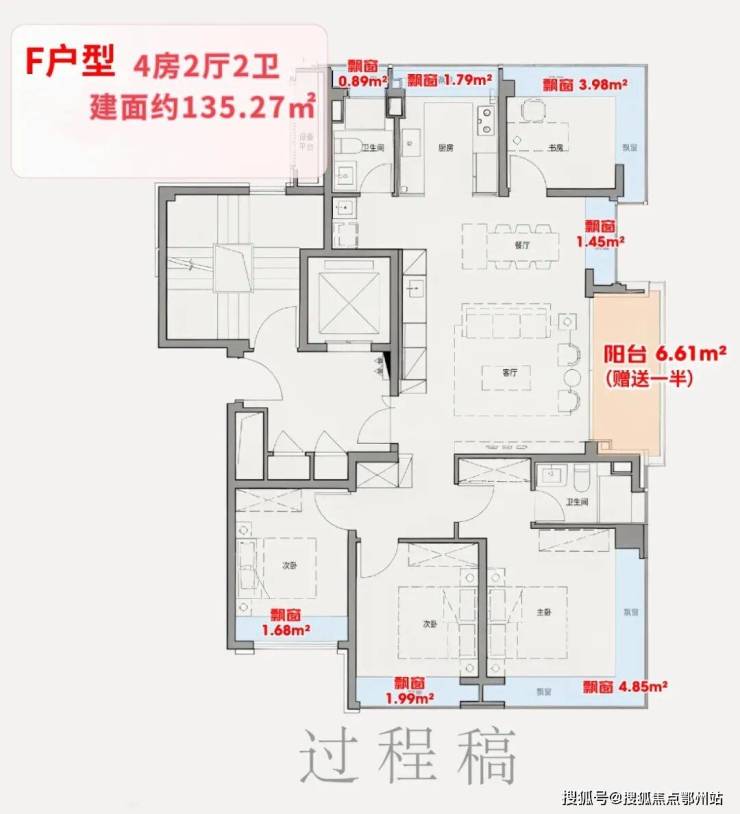 全屋采用飘窗设计,让生活诗意向外延伸;收纳预留柜体等 收纳空间,自在随心; 飘窗赠送、去过道化设计,室内拥有更高的空间使用感!让每一个家庭成员的理想生活,都有了足够空间的释放。