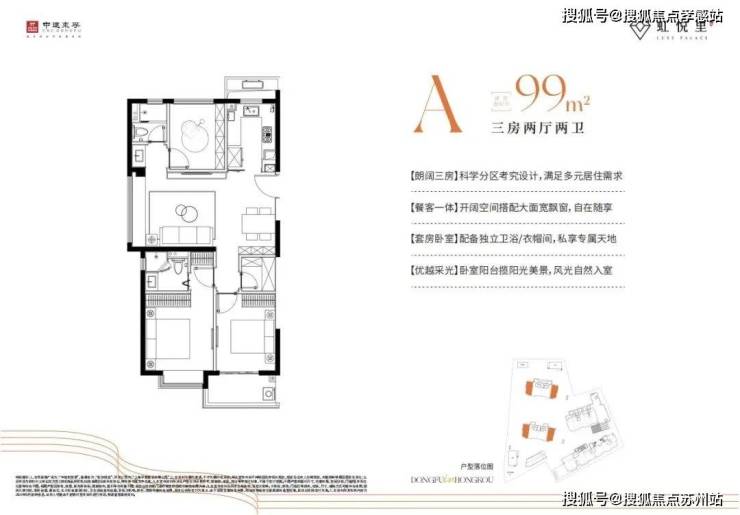 【中建虹悦里】售楼处电话:400-8123-664建面约99㎡边套3房: