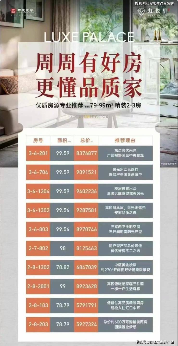 产品方面,中建虹悦里售楼处电话:400-8123-664整盘248套房源一次性入市,从建面约79㎡精致2房,到建面约91-99㎡轻奢3房,多元户型总有一个适合你。