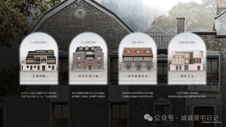 贯彻“中意西景、中正西融”景观理念,以中式花园隐居哲学核心,传承中式里弄记忆、融合西式花园情调。提取场地四种建筑和场域风格特征,营造中西风貌交叠的别墅花园景观,演绎当代海派风情里弄人居。