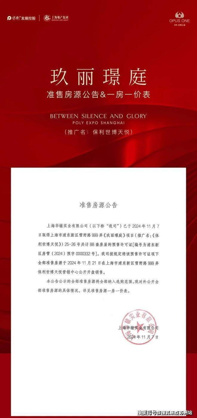 1、项目推广名为“保利·世博天悦”,地名核准名/备案名为“玖丽璟庭”,开发公司为:“上海华辕实业有限公司”;预售证号:浦东新区房管(2025)预字0000015号;2、本资料为要约邀请,不作为要约或承诺;3、相关宣传内容不排除因政府相关规划、规定及出卖人分期规划、未能控制等原因而发生变化;4、买卖双方的权利义务以双方签订的商品房买卖合同及其补充协议、附件等书面文件为准;5、本宣传材料所涉及户型仅供示意参考,具体以政府部门最终审定的图纸和销售合同为准,本资料所涉及面积皆为预估面积,相同户型单位因楼栋、楼层、单元等差异,局部结构、形式、面积、装饰等可能有所不同,且预估面积与实际面积可能存在差异,面积最终以房管局测绘为准。户型图中装修、家具、电器等设备仅为示意,不属于交付内容和交付标准,实际部品的选型和房间空间尺寸根据户型情况,略有差异,以现场实际为准;6、本宣传资料中涉及的价格、折扣、付款方式等信息,因销售时间、户型楼栋、楼层、方位等不同有所差异,以双方签订的商品房买卖合同及其补充协议、附件等书面文件为准;7、本资料所发布的内容为2025年2月的信息,敬请留意最新资料。