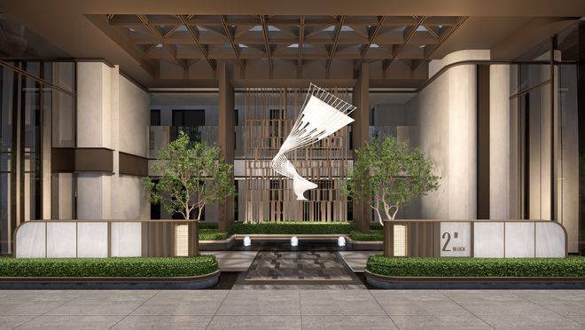 主入口礼序归家轴上,以海上东方+星池雅宴+鎏金茗院三重空间,重现海派隐奢归家之路,步步尊崇.