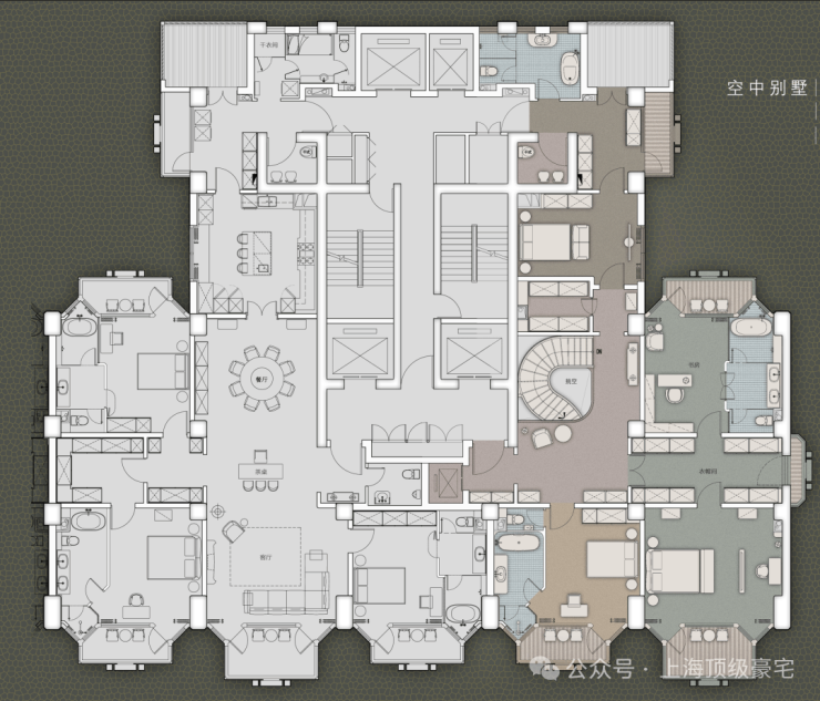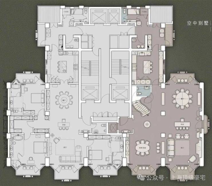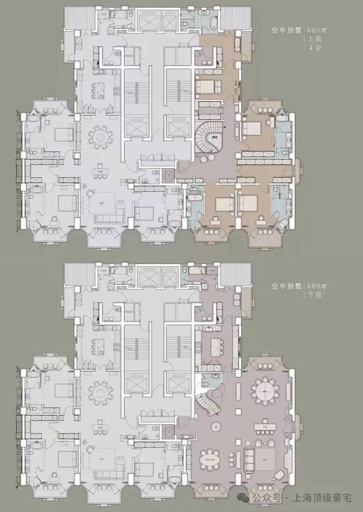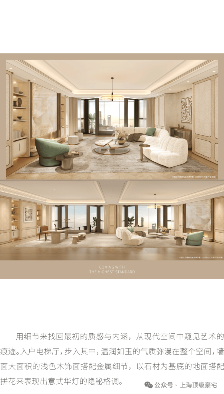 住宅部分全部大平层(复式)设计,单套面积约370-1500㎡,全部精装交付.