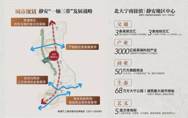 大宁功能区二十年完成三次城市跃迁,这里已不再是“潜力股”,而是正在发生的 “价值完成时”。位居静安“一轴三带”核心C位,与徐汇滨江遥相呼应,成为上海核心区域的两大发展极。