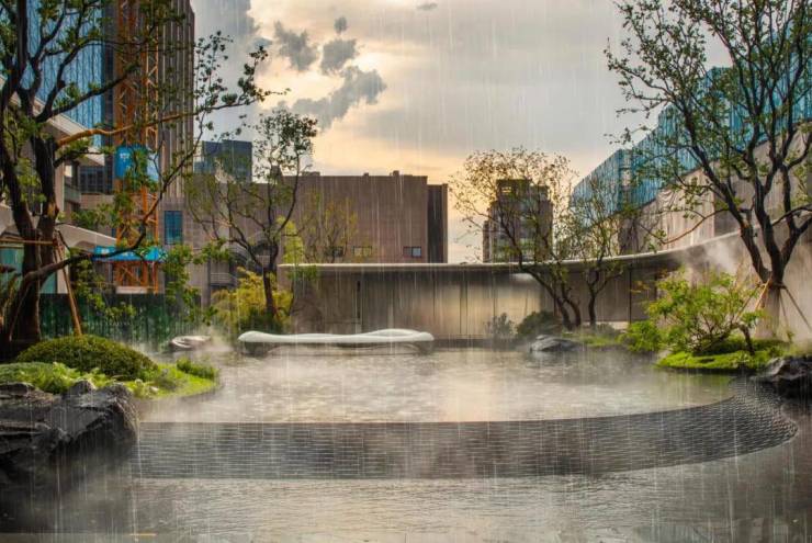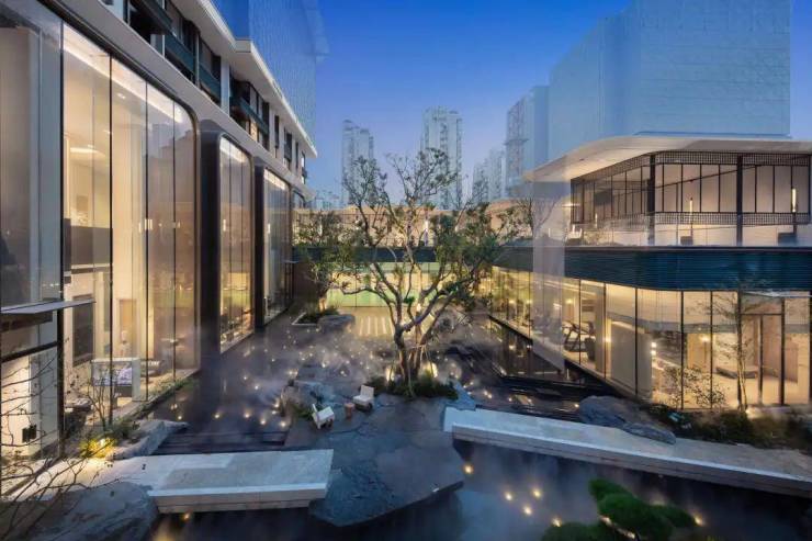 未来,水系穿行于约800㎡的下沉庭院之间,场景之中,水、灯、石、树、墙等等装饰元素有机结合,每一种细节元素背后,都有各自所代表的符号语言。