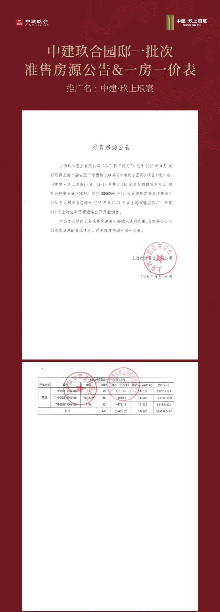 大宁公园对面,1/20号线地铁口600米全新盘,静安大宁【中建玖上琅宸】建面约128-410㎡当代公园地标作品加推!建面约128-160-190-210-280m²3-4房,数套410m²大户型,装修标准4000元/m²,前期均价146800元/m²。