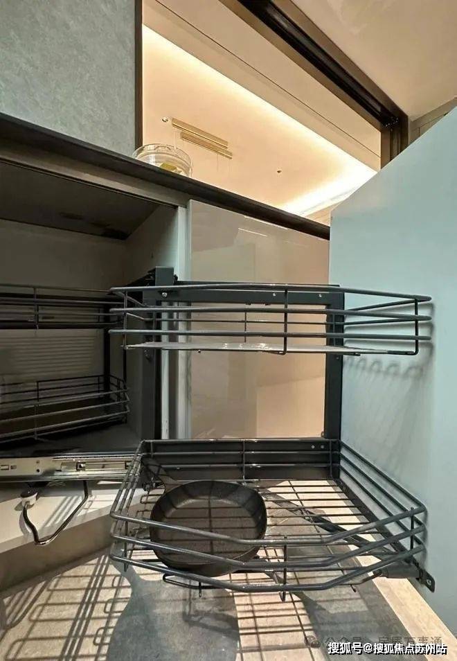 入户玄关处的地面,大理石地面搭配金属线条勾勒出玄关地界,归家的氛围感从这个区域就开始了~这还不是重点,玄关座椅背后,是一面 皮革包裹的墙面。鞋柜下方做了 悬浮处理,同样也是 内嵌灯带,这里灯光的角度还会再调整,因为灯光映射在大理石地面上,要显得尽量柔和不刺眼;同时,鞋柜下方可放拖鞋,还能放扫地机器人,便于日常清扫打理。鞋柜的饰面, 纹路方向统一,呈现出极强的协调感。橱柜作为强功能性的收纳系统,自然少不了操作性能上的考究,吊柜做了 升降式的拉篮,以后再也不用爬上高凳拿取了。下方的橱柜则做了 转角拉篮,充分利用转角空间,使物品井然有序的同时,轻松方便取放。水槽也是一个 大单槽,放得下炒锅汤锅这种大物件~ 抽拉式龙头,清洗大水槽的时候很方便,360度旋转伸展自如,这款弯管还是 硅胶材质,柔软耐用有弹性,还可切换出水模式,出来的水柱也是很柔和细腻不飞溅。厨房玻璃门是 上轨道移门,意味着地面部分没有任何轨道,不会有灰尘积攒,炒菜时关上,避免油烟散入室内;平时拉开,可以扩充室内视觉感受。 卫浴缦云上海所有户型的所有卫生间里都用了悬浮式的洁具和柜体,确保了下方空间的打扫无死角,对未来的入住带来非常大的便利性! 吉博力同层排水技术,静音是最大亮点; 特制“水母”地漏,多重防臭防反溢。干净舒适的卫生间,是从空气到水流的全面把控~你们可以看下缦云上海是如何处理卫生间木门的防潮的—— 卫生间一侧用大理石做踢脚线,这是真正细致入微的巧思!主卧卫生间配备的 电热毛巾架简直就是遇到潮冷节气的“福音”,让毛巾、内衣都能够提前加热干燥。 层高对于缦云上海的纯大宅社区定位,能买这样产品的购房者会非常在意空间感。缦云上海全部 户型层高约3.3米,室内所有空间的门都做了 通顶设计,更阔绰的居室空间,将生活格局有效放大,通风、采光和观景体验的全方位提升! 弧形元素缦云上海样板间里随处可见柔和的圆弧修饰,特别是柜体、墙体包边的 圆弧转角,在进出各个空间时,减少磕碰的风险,对于有孩子和老人的家庭来说,是非常实用的友好设计。而且,门套做了弧形设计后,还叠加了金属线与墙纸做了分割,加强隔断界限感,提升室内家居精致度~比起中规中矩的直线,弧形施工工艺更复杂、造价更高,却多了几分灵动轻盈!这种弧形的元素不只是在样板间里,在售楼处也能经常看到,比如电梯厅。