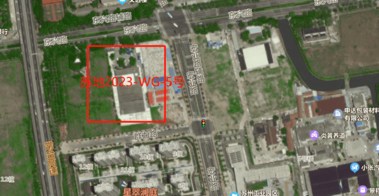 该地块是在苏州2023年首批集中供地,招商局地产(苏州)有限公司以底价9.19亿元竞得苏地2023-WG-5号,楼面价20000元/平米。位于工业园区宏业路西、群力路北,占地面积25530.44平米,容积率1.8。
