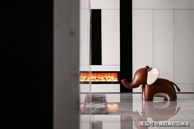 黑白配色的电视背景墙将壁炉纳入这块空间,使得本身冷色调的家瞬间温暖而治愈.