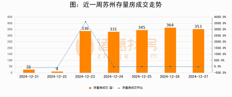 【苏州成交日报】12月27日新房成交405套、二手房353套;涨价房源26套