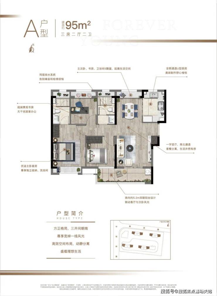 建面约95㎡三房两厅两卫的视频