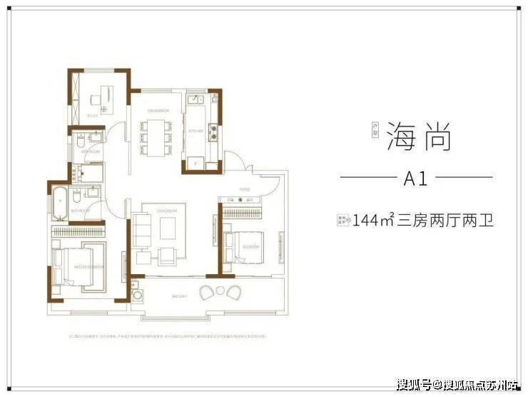 主力户型:精装高层,建筑面积约144㎡(三居)、173㎡(四居),均为一梯一户设计,层高3.1米