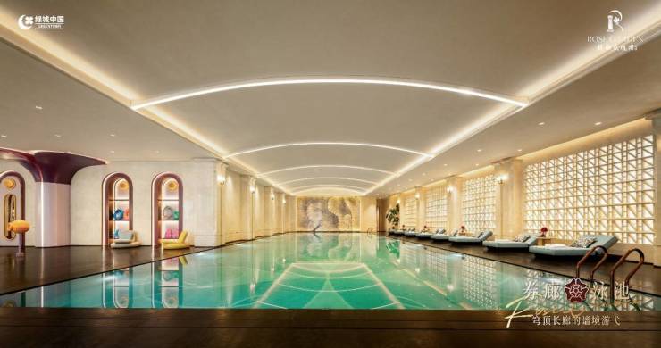 室内恒温泳池以法式玫瑰窗为灵感,马赛克花纹营造波光粼粼之境,以城堡元素打造沉浸式童话场景,创造高浓度陪伴场景。