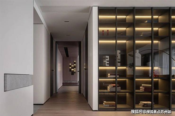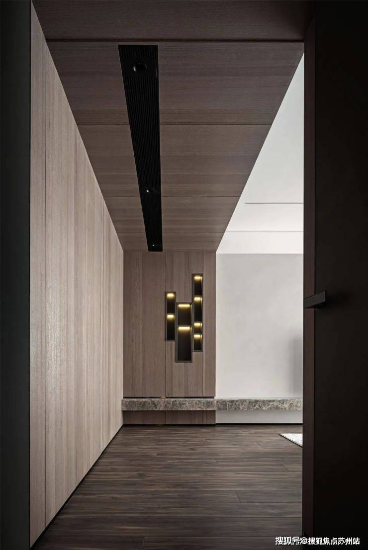 太仓复游城售楼处电话☎:400-8123-664(官方售楼处预约看房热线)主卧空间的整体色调比公共区域暗了一调,胡桃木饰面的灰咖色成了这里的主色调,希望这个暗调空间可以让主人更快地进入梦乡。灯光设计上选用了一些暖色的线性照明,既提供了柔和的照明环境,又体现了现代的科技感。