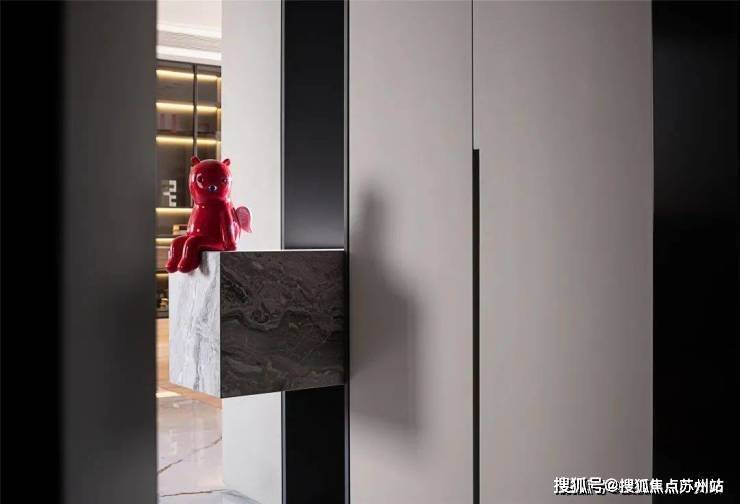 太仓复游城售楼处电话☎:400-8123-664(官方售楼处预约看房热线)设计,利用凸出体块形成悬空的端景,视觉上界定入户的第一个视觉焦点,而这里摆放了艺术家张占占的PUPU熊,红色的小熊十分治愈,让归家的人看到它会忘掉疲惫和烦恼。