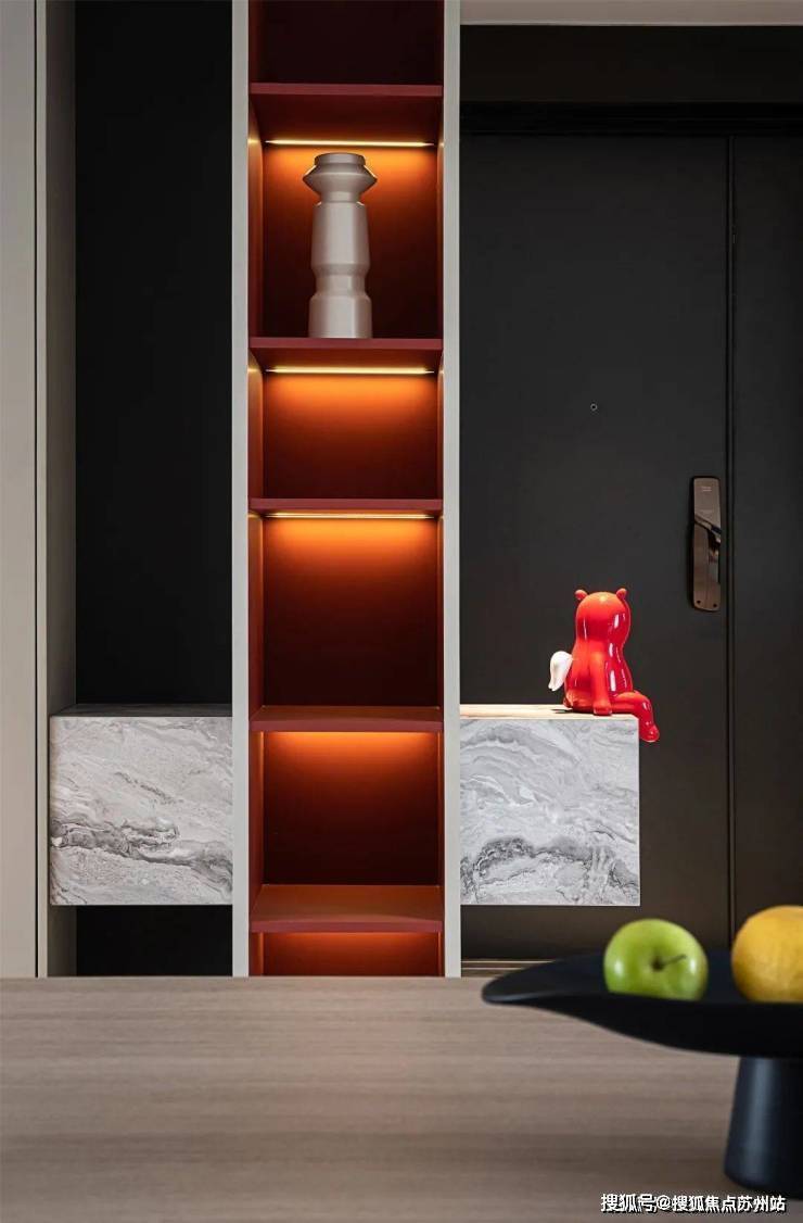 该户型没有入户的玄关空间,进门便是正对着餐桌,为了缓解这个布局上的缺憾,设计师将门厅的鞋帽柜进行体块化穿插复游城售楼处电话:400-812-3664
