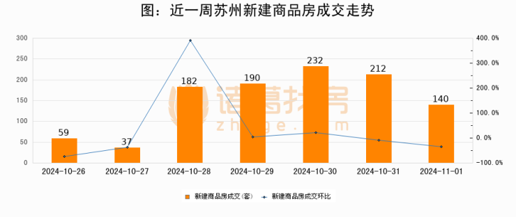 【苏州成交日报】11月01日新房成交140套、二手房306套;涨价房源144套