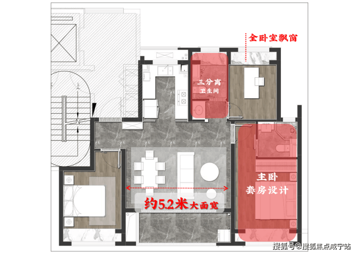 三开间朝南+宽景阳台+约5.2米的大面宽横厅+全卧室飘窗设计,