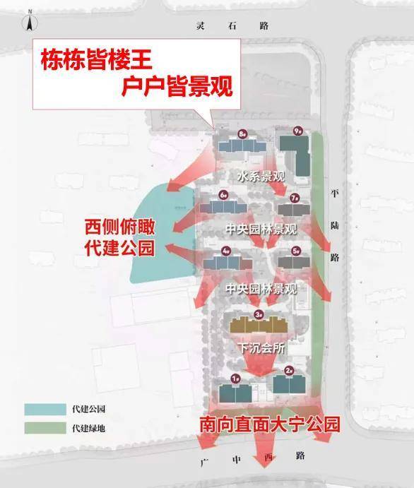 从规划图来看,项目前排可直面大宁灵石公园无敌景观;而办公部分设置在地块东北侧,也有隔断进行出入口区分,对住宅部分来说几乎没有影响。