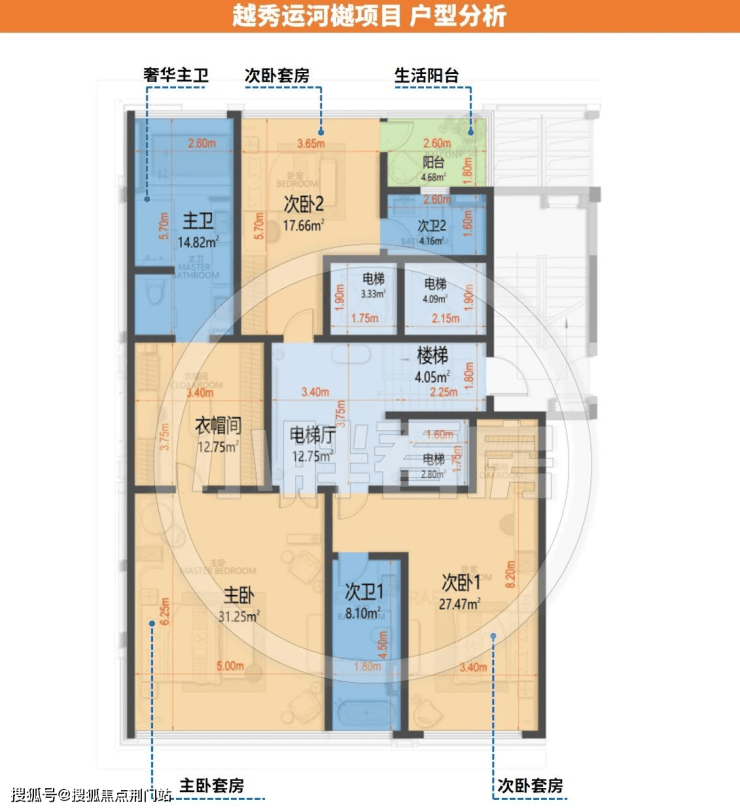 上叠就更不用说了,南北双露台,顶上还赠送一整层露台,有独立的北向入户花园和电梯厅,还有自己约60方+的地下室。相当于买300方上下的运河樾,得到的是500方实际可支配面积。