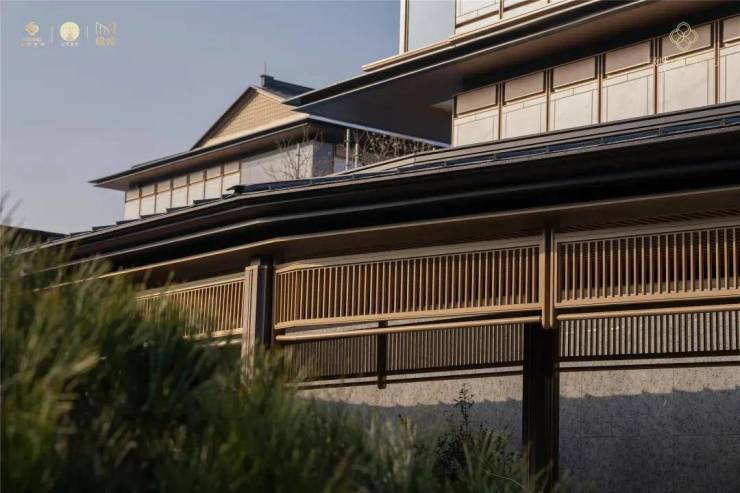 绿城在产品中提炼了歇山顶、重檐等经典形制,再以现代手法,将横向舒展线条、层次分明的挑檐加入构图,形成南北双立面的和谐统一。整体更以“屋檐、屋身、台基”东方建筑的经典三段式设计,简约中隐含贵气。