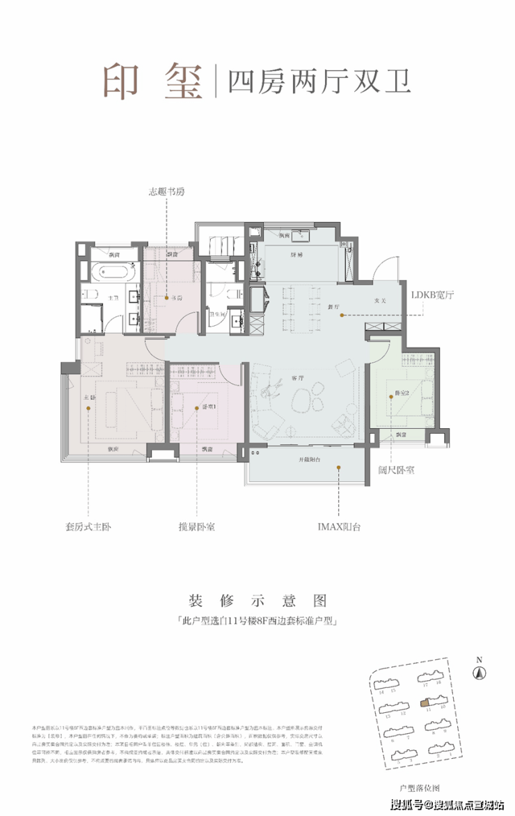 其次13幢,同样南向无遮挡,低区与高区采光都优越;东侧靠近中央景观轴,北侧是庭院景观,整体的楼栋位置较优。
