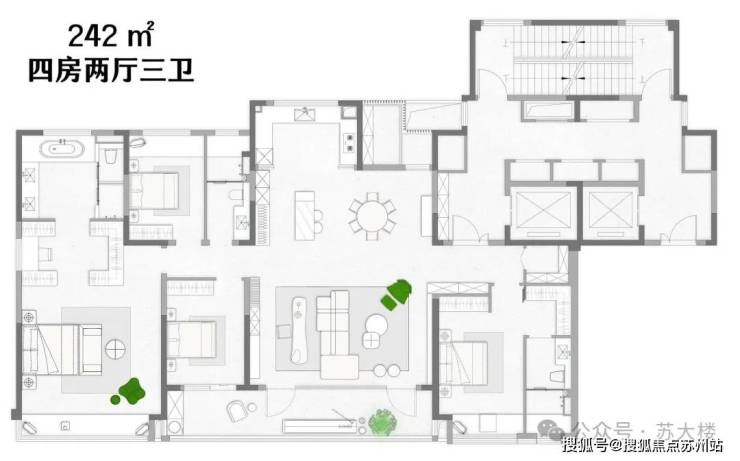 约240㎡南向面宽做到了约20.7米,什么概念?快赶上路劲·君和居285m²洋房面宽(21.5米)。