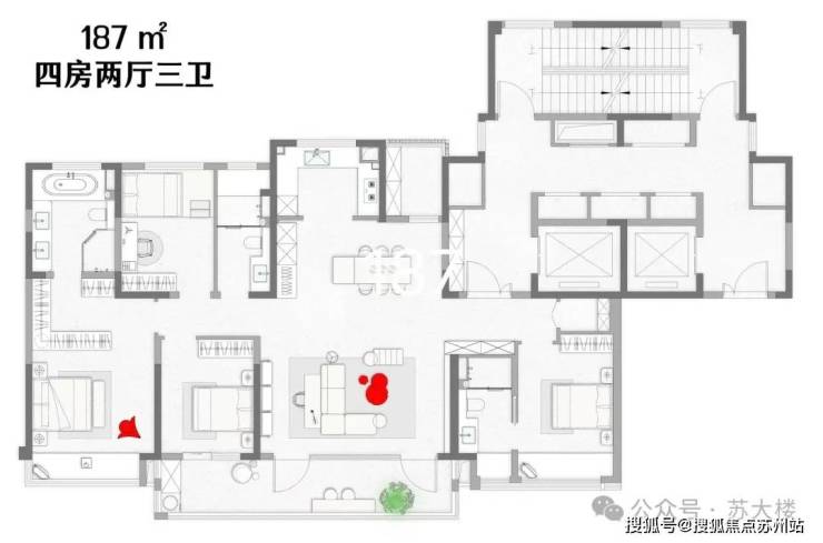 约185㎡南面宽达到约17.8米,和市面上200㎡以上户型差不多。