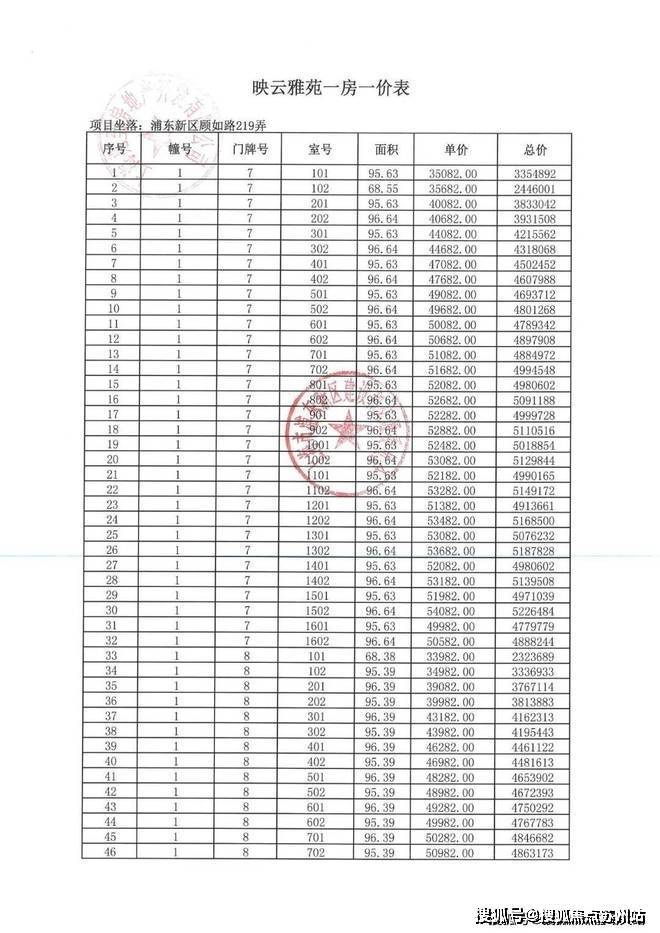 46、起价:即“起步价”是指物业所有房源中的最低销售价格(一般指户型、朝向、格局不好的楼房价格,各层的差价几十~几百元)。