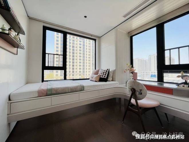 两间卧室朝南,均带有飘窗,主卧自带独立卫浴,小户型也可以拥有酒店套房般的体验。北向房间设计双飘窗,这也就意味着拥有双向景观,给了生活更多一种的可能。