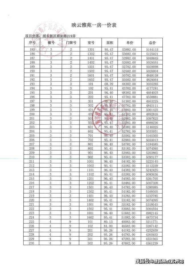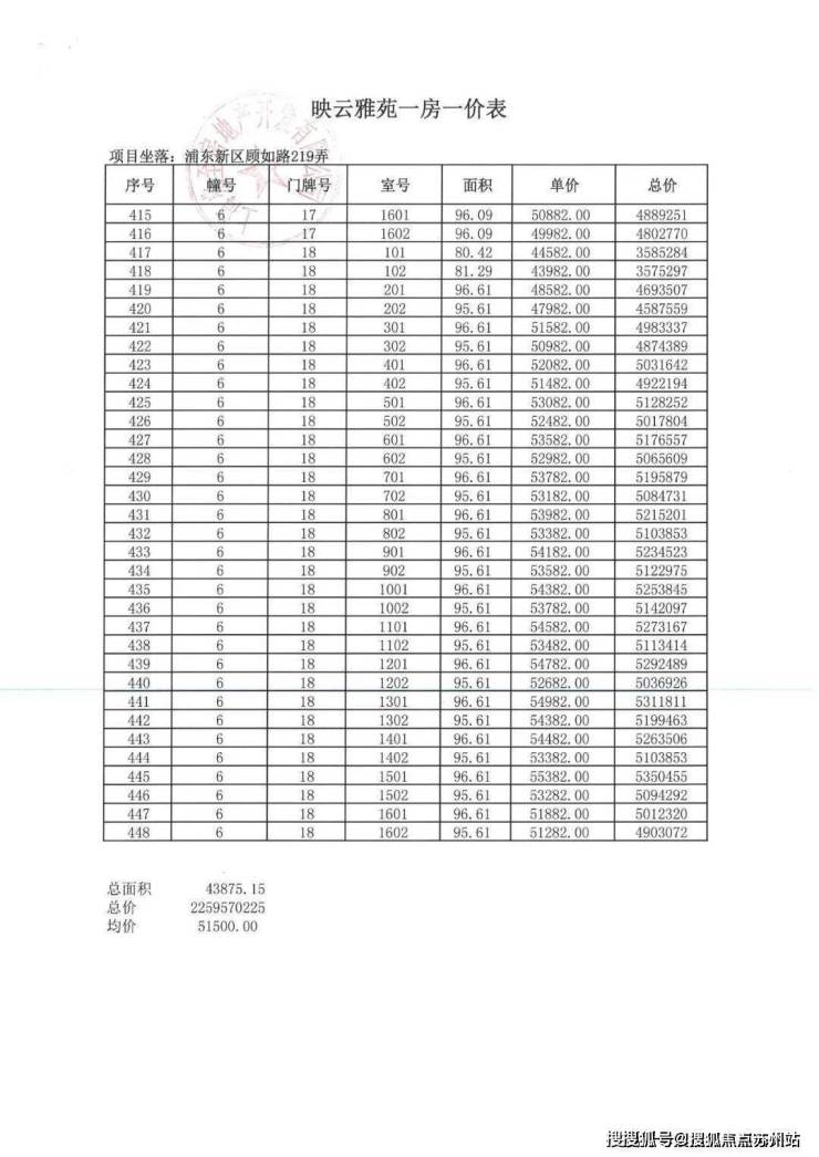 48、均价:即物业的平均销售价格,将本物业各套房子的销售价格相加之后的和除以各单位建筑面积的和数,即可得出每平方米的均价)。